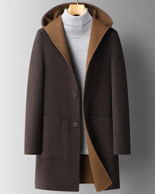 Abrigo largo de lana con capucha de lujo